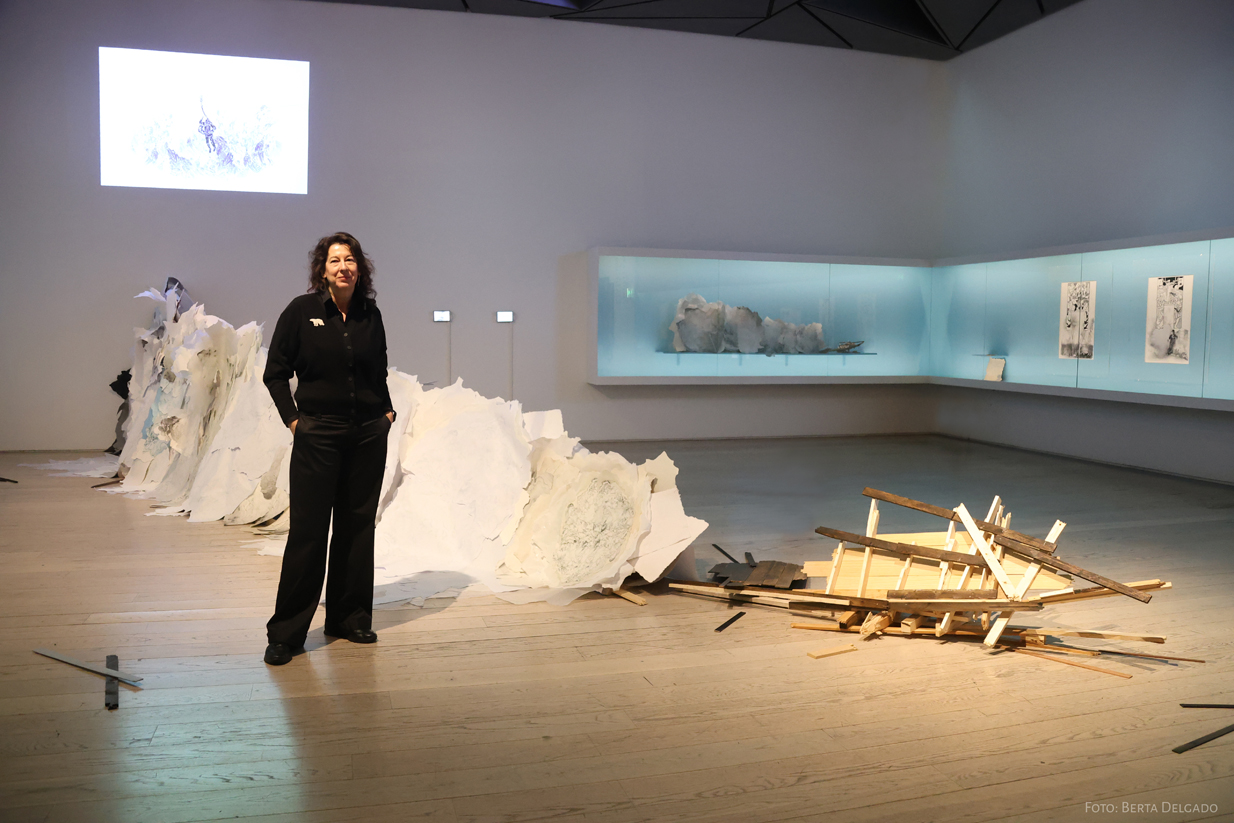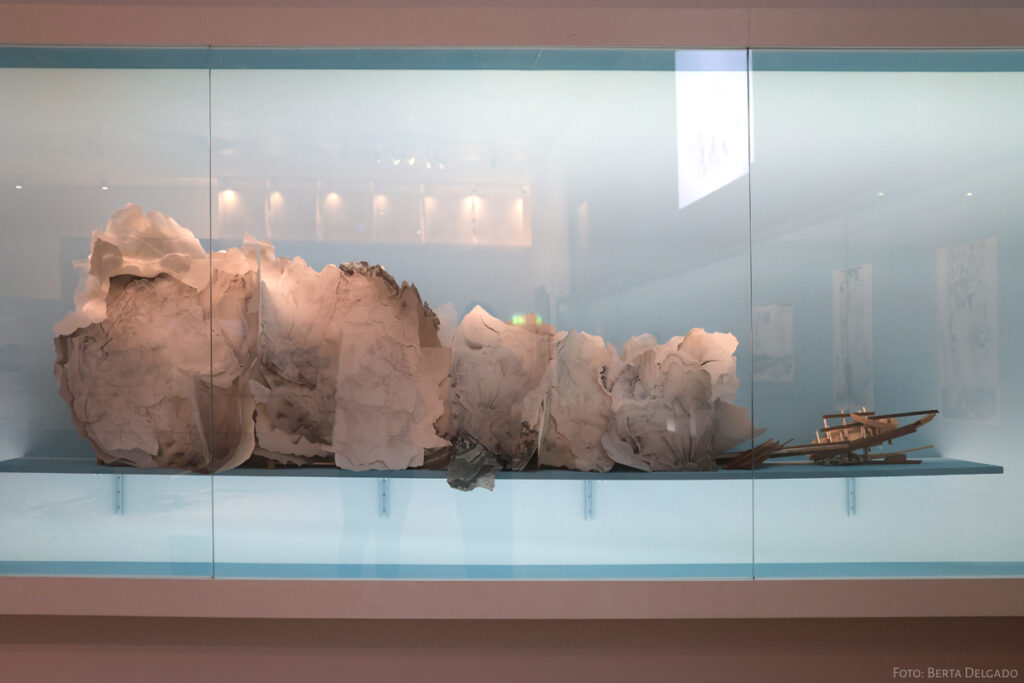 – En la exposición hay una instalación de una gran ola de papel ¿cómo elaboraste esta pieza?