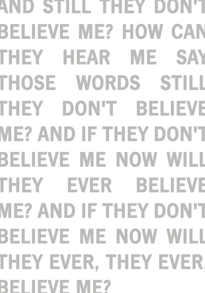 El arte lleva trabajando con perspectiva de género desde los años 60, pero ni sus formas de conocer, ni el resultado de sus investigaciones, obras, propuestas, han trascendido a la sociedad. El sistema evita que haya esa comunicación. Sin embargo en el pasado el arte era una herramienta eficaz para condicionar la ética y los comportamientos sociales. La moral cristiana dirigió sobre la mujer el mandato de que fuera castigada en la escena pública, con una violencia cruel, justificada por el pecado y la culpa. Quise seleccionar aquellas pinturas históricas modificándolas, con el propósito de desvelar el poder que la imagen ha demostrado a lo largo de la historia para conformar nuestro mundo. Eliminé de mis recreaciones figuras y armas de aquellos martirios cristianos en los que grandes maestros, como Fra Angelico, Jean Fouquet, Domenico Veneciano o Bernardo Daddi, representaron la violencia contra la insolencia de las mujeres, como una vía de purificación y fortaleza espiritual. Buscaba señalar cómo la violencia de género actual repite las escenas y principios que hemos heredado, cómo pervive en el imaginario colectivo compartido. De aquellas hogueras quedan las cenizas que se reavivan: una representación que pretendía reafirmar la solidez de un orden patriarcal que aspiraba exclusivamente a confirmar de modo propagandístico sus valores. En otra serie incorporé dibujos de castigo y protección, mujeres revestidas con la famosa doncella de hierro o una armadura para cazar osos. En otras obras incluí figuras conocidas como el mono, símbolo de incontinencia sexual, del jardín de la Virtud de Mantegna y personajes de la mitología griega que también habían sufrido violencia sexual como Troilo con Aquiles, o Cassandra que además fue maldecida a no ser creída. Un texto en gran formato recogía la letra de una canción de The Smiths: «¿Van a creerme alguna vez?»